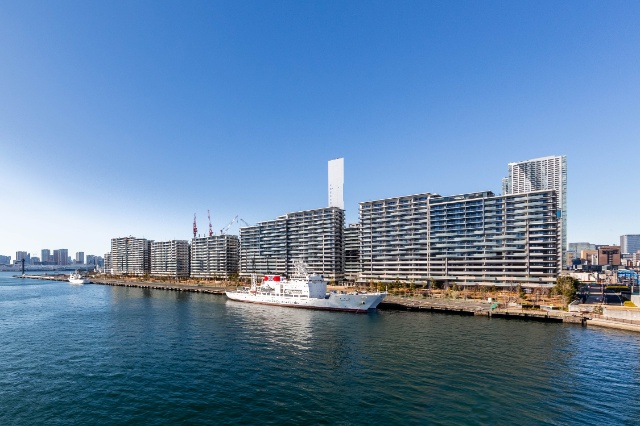 COVID-19の影響で東京2020大会は1年延期となり、2021年7月〜9月に選手村として使用。大会終了後、21棟の板状棟は住宅仕様にリノベーションされ、2023年11月に改修完了。2024年1月19日、ついに入居が始まった。 同年3月にはショッピング施設「ららテラスHARUMI FLAG」がオープン、4月には区立晴海西小・中学校が開校し、「まちびらき」が実現した。