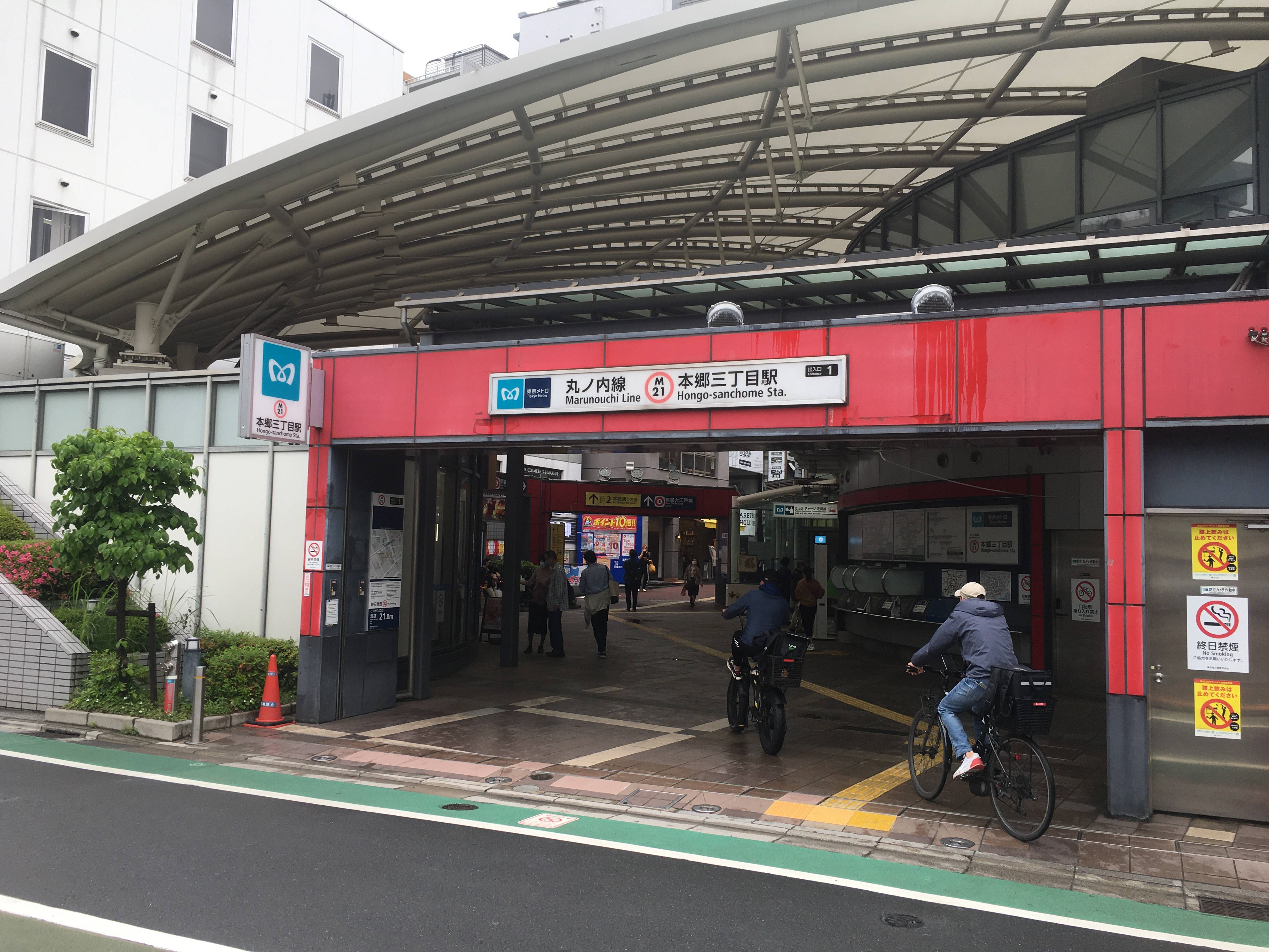 本郷三丁目駅は、東京メトロ丸ノ内線と都営大江戸線が交わる、文京区の中でも個性のはっきりした駅です。